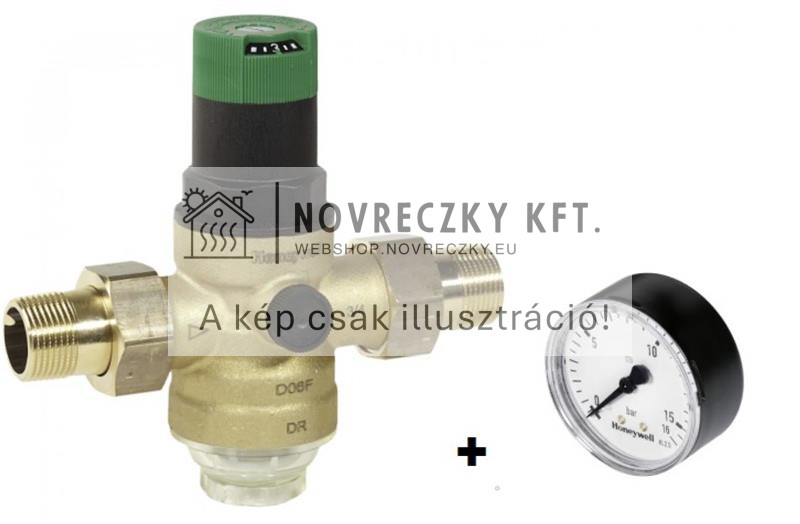 D06F-1/2AM nyomásszabályozó + nyomásmérő, tehermentesített szelep, 1/2", KM+hollandi, 1,5...6bar
