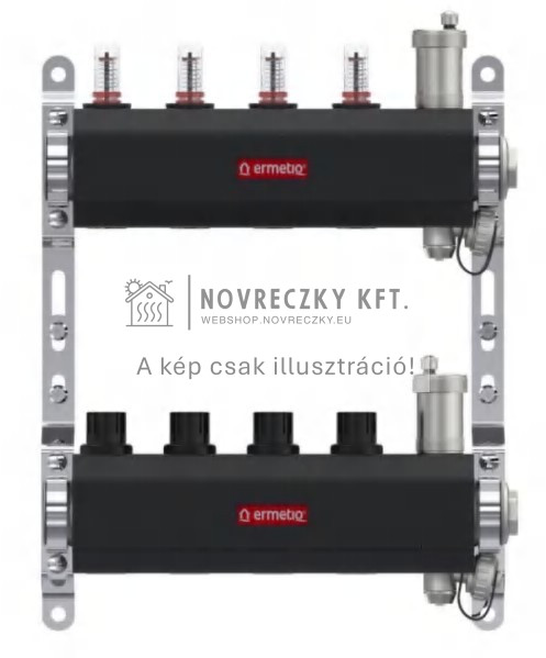 Osztó-gyűjtő Inox, 11 kör, szigetelés, áramlásmérő, auto légtelenítő, eurokónusz 1"x3/4"