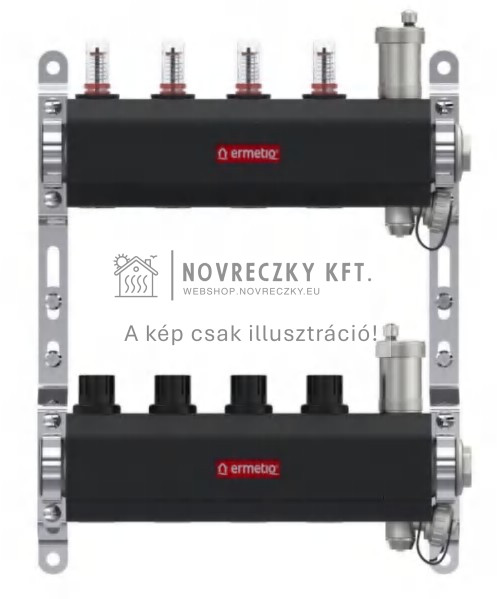 Osztó-gyűjtő Inox, 12 kör, szigetelés, áramlásmérő, auto légtelenítő, eurokónusz 1"x3/4"