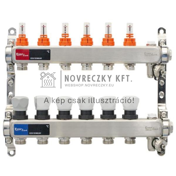 Szelepes osztó-gyűjtő INOX 3 körös áramlásmérővel,eurok, 1”x3/4”